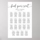 Elegant and Modern Calligraphy Wedding Seating Plan Find Your Seat. Personalised Simple Minimalist Seating Chart for 190 guests (19 tables). Just click the customise further link, shown under the text personalisation area on the right, and choose your custom colour background. This sign poster template makes it fast and easy to create stunning additions to your wedding decor. Signs can be enlarged, there are many sizes to choose from, as well as options for custom framing and matting.