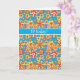 A 19th Birthday Card with an all-over pattern of red, orange, yellow flowers on a bright turquoise background, from a handpainted paper collage by Judy Adamson.