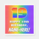 This cheerful and exciting birthday paper napkin design features a large number “19” with a colourful rainbow spectrum inspired gradient pattern, along with the message “HAPPY 19th BIRTHDAY,”, and an editable recipient name. The background also features a fun multicolored rainbow spectrum inspired gradient pattern. Birthday themed paper napkins like this might be a fun way to celebrate somebody’s nineteenth birthday. [~Z0000573]