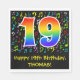 This fun, vibrant, and colourful birthday paper napkin design features a large number "19" having a rainbow spectrum gradient inspired pattern. It also features the message "Happy 19th Birthday,", and a customisable name. Part of the background has a pattern of various music notes and symbols having a variety of colours and sizes. Birthday themed paper napkins like this might be used when celebrating a musician’s, a singer’s, a composer’s, or somebody else’s nineteenth birthday. [~Z0000421]