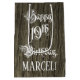 This opulent and elegant birthday-themed gift bag design features the message “Happy 19th Birthday,” in elaborate script style text, on a faux wood look inspired pattern background. It also features a custom recipient name. A birthday themed gift bag like this might be used when giving a gift or present in celebration of somebody’s nineteenth birthday. [~Z0000558]