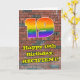 This exciting and vibrant urban graffiti and street art themed birthday greeting card design features a large number “19” with a colourful rainbow spectrum gradient inspired pattern, along with the message “Happy 19th Birthday,”, and a customisable name. The background of the front has a brick wall pattern. The inside has a customisable birthday greeting message, or could perhaps be cleared and left blank if a message is to be written by hand instead. A colourful, editable birthday greeting card like this might be sent in celebration of somebody’s nineteenth birthday. [~Z0000586]
