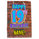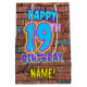 The front of this fun birthday gift bag design features the message “HAPPY 19TH BIRTHDAY,” having a colourful, vibrant, graffiti and urban street art inspired look, in addition to a personalised recipient name. The background features a pattern inspired by the look of a brick wall. A vibrant gift-bag like this might be a fun way of wrapping a birthday present or gift being given to somebody who is celebrating their 19th birthday. [~Z0000536]