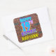 This fun birthday themed square sticker design features the message “HAPPY 19TH BIRTHDAY,” having a vibrant, colorful, graffiti-inspired appearance, plus a personalized recipient name. The background features a pattern inspired by the look of a brick wall. Fun, personalized stickers like this might be given as a birthday present, or used while wrapping presents/gifts, or perhaps used as birthday party decorations when celebrating somebody’s nineteenth birthday. [~Z0000535]