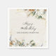 Elegant winter white flowers are nestled in pine greenery and pinecones. The soft ivory white watercolor wash background is accented with gold flecks to create a sophisticated and chic aesthetic.