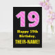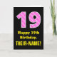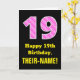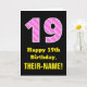 19th Birthday: Pink Stripes and Hearts "19" + Name Card