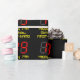 This fun and silly birthday themed wrapping paper design features a large number "19" having a red seven segment digital display style appearance, along with the message "Happy 19th Birthday," and a personalised name in geeky yellow text, on a black coloured background. Wrapping paper like this might be used when wrapping gifts being given to somebody in celebration of their nineteenth birthday. [~Z0000387]