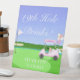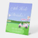 This golf-themed bridal shower design is crafted with the bride-to-be at the centre of its theme. It features a heart-shaped putting green and a flag pin fluttering in the breeze, proudly displaying the words "Bride to Be." The golf cart is festively adorned with champagne, gifts, a tiara, and an intricately illustrated bridal shower cake. A bridal veil elegantly drapes from the golf bag, adding a charming touch. Designed by Daphsam, this one-of-a-kind creation includes a "19th Hole Drinks" pedestal sign, perfect for adding a festive flair to your tables, ensuring a delightful and stress-free celebration.