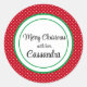 Modern "Merry Christmas" greeting, red & white Swiss dots pattern with framed name on these round stickers. Printed in vibrant full colour on glossy paper; matte is also available. Easily personalise using the Template provided. Twenty 1.5" stickers per sheet or six 3" stickers per sheet. See "About This Product" at side for more information.