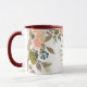 Inspirational Scripture custom coffee mug depicts beautiful peach, gentle pink and taupe watercolor flowers and greenery. It features Bible Verse 1 Corinthians 13:13, "And now these three remain Faith Hope and Love. But the greatest of these is LOVE." _