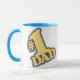 #1 dad mug in yellow, brown, and blue, printed on both sides