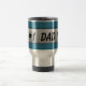 "#1 Dad!" on metal plate and steel blue background mug. Easily personalise the text, font style and colour of text. Lots of cool styles and colours of mugs available. Show your dad how you feel about him with this great gift, perfect for Father's Day and his birthday.