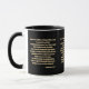 This two-tone mug features a sergio trendy print font with golden coloured letters white outline showcases the "1 John 2:4-6" KJV bible scripture verse over a black backround. This verse is referencing the Book Of 1 John 2nd chapter showing verse 4 through 6 in this bible scripture quote theme from the King James bible. The rim & handle are glazed in matching colours available in 11-ounce or 15-ounce sizes microwave and dishwasher safe ceramic construction.