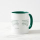 This mug has the "1 John 4:4" bible quote scripture KJV in a bold print font with green letters plus bible citation in this faith based theme from the King James bible. The rim & handle are glazed in matching colours available in 11-ounce or 15-ounce sizes microwave and dishwasher safe ceramic construction.