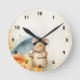 1 Mouse with blue umbrella orange pink flowers Round Clock