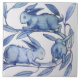This is the left facing (right side) of a pair of tiles designed by William De Morgan. Each tile shows three blue rabbits chasing each other along a leafy vine. The other "Running Rabbits" tile is listed separately.