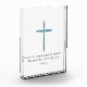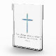 Introducing a minimalist blue cross with a distressed finish. Its soothing colour brings peace and simplicity, symbolises tranquillity and encourages reflection. Below the cross, the words from 1 Peter 5:7 remind us to "Cast all your anxiety on Him because He cares for you."