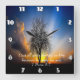 1 Peter 5:7 tree in a field with blue sky Square Wall Clock
