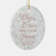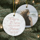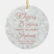 Cheers and Happy Birthday! Celebrate a joyful milestone birthday for her with a custom photo faux marble round ceramic ornament. All wording on this template (including "Cheers to 21 Years") is set up for a 21st birthday, but is simple to personalise for any year or event type. The pink and white design features a faux marble background, stylish vintage art deco style typography, elegant script calligraphy, and one picture of your choice. This unique & modern keepsake adds an elegant touch to Xmas home decorations. Example photo is by Averie Woodard (source: @averieclaire on Unsplash).