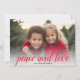 Red and White - Use one horizontal photo and make a unique and trendy Merry Christmas greeting with an elegant damask pattern on the back. The greeting is shown in a modern, bounce calligraphy that can be changed to meet your favorite saying. The simple. minimal design highlights your family photo. If you need to move anything around, click on the customize button to make changes.