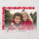 1 Photo Christmas Script Red Damask Peace Holiday Card