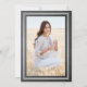 Share the joy of a high school or college graduation and invite family and friends to celebrate with elegant custom photo faux silver foil and chalkboard invitations. This template is set up as a combination graduation announcement and party invitation, and is simple to personalise with any wording of your choice, such as parents' names, graduate honours or awards, degree, favourite inspirational quote, or future plans and contact info. The design features a dark grey printed faux chalkboard background, elegant striped border, stylish modern calligraphy, classic vintage typography and one favourite photo, such as a senior picture or an image from the commencement ceremony. Please note that silver is printed grey ombre colour, not metallic foil. These stylish graduation cards are an elegant way to share a special day celebration with family and friends. Congratulations to the graduate!