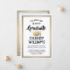 Share the joy of a high school or college graduation with these custom photo black, white and gold announcements. (IMAGE PLACEMENT TIP: An easy way to centre a picture exactly how you want is to crop it before uploading to the Zazzle website.) This template includes graduate's name, class year & school, as well as any wording of your choice, such as party invitation details, special honours, degree title, favourite inspirational quote, graduate's contact info, future education plans, or new job position. All text is simple to personalise. Design features a modern faux gold foil border & graduation cap, elegant script calligraphy, traditional typography, and one photo of your choice, such as a senior picture or image from the commencement ceremony. Please note that gold is printed colour, not metallic foil. These graduation announcement cards are a trendy and chic way to share your special day celebration with family and friends. Congratulations to the graduate!