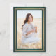 Whether friends and family are practicing social distancing or just live far away, connect with them online with a stylish virtual graduation party. (IMAGE PLACEMENT TIP: An easy way to centre a photo exactly how you want is to crop it before uploading to the Zazzle website.) This modern green, gold and white invitation makes it possible to share one photo and invite guests to a long distance event via zoom video conferencing, internet live streaming, or a virtual reality video game. All text is also simple to personalise for a drive-by or drive-through graduation car parade. If just an announcement card is preferred, simply change the text to include any details of your choice, such as parents' names, special honours, degree title, graduate's future plans & contact info, or favourite inspirational quote. Template can also inclue a personal message if this is a rescheduled event due to a cancellation or postponement. If there's any text not wanted simply delete it. Design features a green background, faux metallic foil, stylish modern white typography, handwritten style script calligraphy, and one photo of your choice, such as a senior picture or image from the commencement ceremony. Please note that gold is printed colour, not actual foil. This elegant card is a chic way to begin your special day celebration. Congratulations to the graduate!