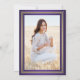 Whether friends and family are practicing social distancing or just live far away, connect with them online with a stylish virtual graduation party. (IMAGE PLACEMENT TIP: An easy way to centre a photo exactly how you want is to crop it before uploading to the Zazzle website.) This modern purple, gold and white invitation makes it possible to share one photo andinvite guests to a long distance event via zoom video conferencing, internet live streaming, or a virtual reality video game. All text is also simple to personalise for a drive-by or drive-through graduation car parade. If just an announcement card is preferred, simply change the text to include any details of your choice, such as parents' names, special honours, degree title, graduate's future plans & contact info, or favourite inspirational quote. Template can also inclue a personal message if this is a rescheduled event due to a cancellation or postponement. If there's any text not wanted simply delete it. Design features a purple background, faux metallic foil, stylish modern white typography, handwritten style script calligraphy, and 1 photo of your choice, such as a senior picture or image from the commencement ceremony. Please note that gold is printed colour, not actual foil. This elegant card is a chic way to begin your special day celebration. Congratulations to the graduate!