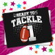 This football birthday design is perfect for a 1st birthday football theme birthday party to celebrate turning 1 year old! Features 'Ready To Tackle 1' 1st birthday football quote with football graphic. Perfect for anyone who loves football turning 1 year old!