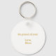 At the back of the Keychain, you can find and edit the personalizeble greeting and name.