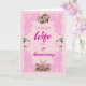 A 1st anniversary card for your wife. An elegant tracery in pink sets of the four pink roses. The background is a pale pink pattern of flowers. A lovely card to send to your wife on your wedding anniversary.