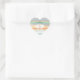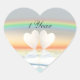 Pretty sticker with an image of two paper hearts floating on the water under a rainbow. Customisable text says "1 Year".