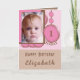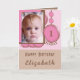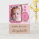 1st Birthday add name photo pink brown Card
