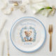 Birthday Paper Plates with a cute teddy bear and balloon arch in soft light blue and beige. Cute design for first or any Birthday of a little boy. Easily personalise all the text. Please visit the store for the full line of products that are available :) - Kate Eden Art
