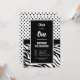 A modern black and white 1st birthday party invitation featuring polka dots and zebra stripes.
