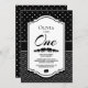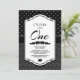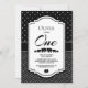 Invite your friends and loved ones with this black and white elephant, polka dots and chevron striped 1st birthday invitation.