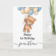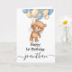 1st birthday blue balloon teddy card