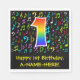 This fun, vibrant, and colourful birthday themed paper napkin design features a large number "1" with a rainbow spectrum gradient inspired pattern, along with the message "Happy 1st Birthday,", and a personalised name. Part of the background features a pattern of various music notes and symbols having a variety of colours and sizes. Birthday themed paper napkins like this might be used when celebrating somebody’s 1st birthday. [~Z0000421]