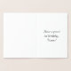 The front of this elaborate and lavish birthday foil greeting card design features the message “Happy 1st Birthday,” in opulent script style text. The inside has a personalised birthday greeting message, or could perhaps be cleared and left blank if a message is to be written by hand instead. A formal, customised birthday greeting card like this might be used to celebrate somebody’s first birthday. [~Z0000555]