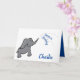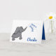 The outside of the card shows an image of an illustrated elephant blowing water in celebration.