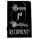 This elegant and ornate birthday themed gift bag design features the message “Happy 1st Birthday,” in opulent script style text, on a black coloured background. It also has a customisable recipient name. A formal birthday themed gift bag like this might be used when giving a gift or present in celebration of somebody’s first birthday. [~Z0000557]