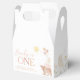 Barnyard Farm Animals 1st Birthday Party - A cute farm themed 1st birthday favour gable boxes for your little girls birthday party. Our design features cute watercolour cow, pig, sheep and duck with balloons, sun, flowers and butterflies in earthy pinks and browns.
