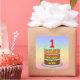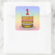 1st Birthday: Fun Cake and Candle + Custom Name Square Sticker