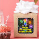 This exciting and fun birthday square sticker design features a large number “1” with a colorful rainbow spectrum gradient inspired pattern, along with the message “Happy 1st Birthday,”, and an editable name. The background features an exciting and colorful bursting celebratory fireworks inspired pattern. Fun, personalized stickers like this might be given as a birthday gift, or used while wrapping presents, or perhaps used as birthday party decorations when celebrating somebody’s 1st birthday. [~Z0000579]