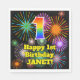 This exciting and fun birthday-themed paper napkin design features a large number “1” having a colourful rainbow spectrum gradient inspired pattern. It also features the message “Happy 1st Birthday,”, and an editable name. The background features an exciting and colourful pattern inspired by the look of bursting celebratory fireworks. Birthday themed paper napkins like this might be fun to use at a party being held for somebody who is celebrating their 1st birthday. [~Z0000574]