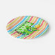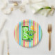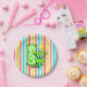 A cute green monster holds a yellow balloon to celebrate your 1st birthday! Personalise and add your child's name. Happy Birthday one-year-old!