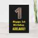 1st Birthday: Name, Faux Wood Grain Pattern "1" Card