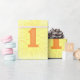 This number one will let your child know that it's a fun celebration. The number is painted in orange on a yellow background, with orange lines coming out from the number one.