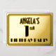 The front of this stylish and 1920s-1930s era style inspired first birthday party/celebration foil invitation card design features a custom name, an art deco look inspired number “1st”, the message “BIRTHDAY PARTY”, and a border pattern consisting of lines. The back features personalised details about the event, such as the date, time, location, and any other important information. Elegant, luxurious, customisable invitations like these might be used to invite attendees/guests to a birthday gathering/party being held to celebrate somebody’s 1st birthday. [~Z0000606]